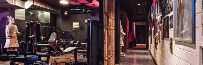 Und wer bitte ist John Reed, wenn schon Personalisierung dann richtig. Wir wußten ja auch wer hinter KERNER oder PILAWA oder SCHREINEMAKERS steckte, also sie noch talkten. Mein Karte funktioniert noch, es ist die gleiche Schranke – ansonsten ist alles anders. Weiß jedenfalls die nette Dame an der Rezeption, die sagen bestimmt Desk hier, wir wollen anders anders sein, ja dies wollen wir und sind wir.Ein neuer Mix aus Sport, Design und Musik. Also die selben Geräte, aber Löwenplastiken, falsche Bücher in Riesenregalen und die Decke soll an die in der  Sixtinischen Kapelle erinnern – nicht ihr ernst. Dazu Peitschen und anderes Zuchtmaterial an den Wänden – der Ausstatter muss Fifty Shades of Grey gelesen haben. Und dazu Musik – laut und laut. Sie werben hier auch mit – übersetze ich mal gleich für meine Eltern – Party in der Jogginghose! Versteh ich nicht, jeder trägt hier Riesen-Kopfhörer, um ja seine eigene Musik hören zu können!